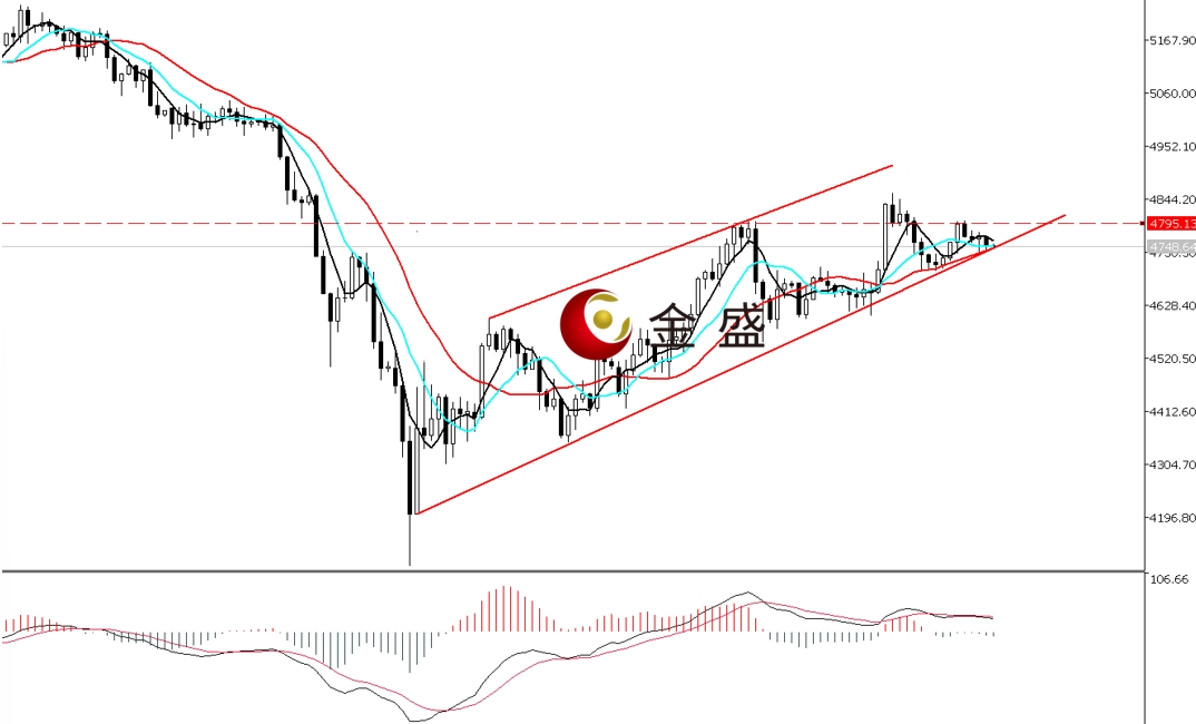 现货黄金周五 (4月10日)开市于4792.72美元/盎司。亚欧盘时段,美指99美元下方运行,日内震荡偏反弹。黄金承压整数关口下行,多头回吐昨日大部分涨幅,近三日波动空间逐渐收窄。截止目前,金价最高4800.92美元/盎司,最低4737.92美元/盎司。黄金走势形成上行通道,昨日价格依托下轨有反抽。今天日内再度回踩支撑线,短期关注其真假突破。 多空分水岭在4700美元关口,操作上低吸为主。晚间美国将公布CPI数据,市场预期年率增长3.3%,一旦公布值不及预期值,则偏向利好金价。