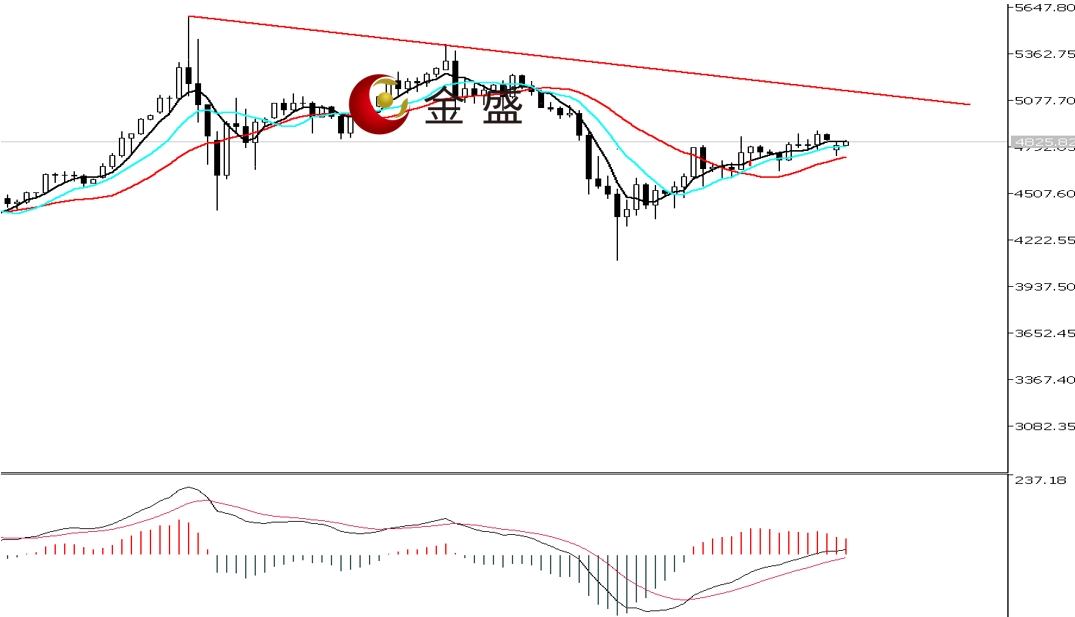 周末美伊局势骤然恶化,霍尔木兹海峡再度关闭。周一早盘,黄金大幅低开低走,价格最低至4737.12美元,随后出现强势反扑。午盘行情依托4780美元一带窄幅整理。晚盘时段,行情延续反扑,多头回补日内大部分缺口,价格创当日高点4827.35美元,最终收阳线。均线系统不断收敛走平,价格围绕其震荡。MACD指标快慢线零轴下方现金叉,做多的动能减弱。昨日K线再次出现V型走势,黄金或继续反扑周线布林带中轨(4860附近)的压力。短期美伊走向决定市场风险偏好,投资者需重点留意局势最新动态。