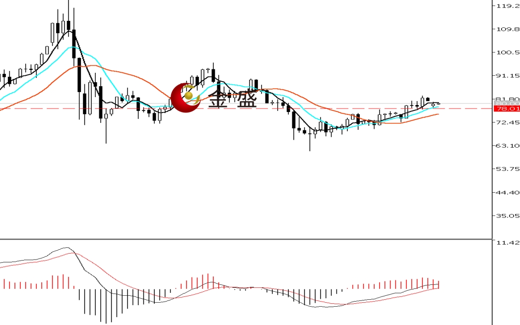 前一个交易日,早盘时段,白银低开低走至78.6美元形成当日低点,随后强势反扑突破80美元关口,价格最高值80.63美元。欧美盘时段,行情波动收窄,多空围绕80美元一带横盘为主,最终收小阳星。均线系统收敛向上拐头,对价格反弹形成支撑。MACD指标快慢线零轴下方现金叉,做多的动能为主。昨日白银低开高走收阳,价格未跌破多空分水岭78美元一带,即上周的上行结构未破坏。跳空缺口还未完全关闭,缺口上轨81美元一带是强压力位,短期偏向78—81区间震荡,操作上高抛低吸。