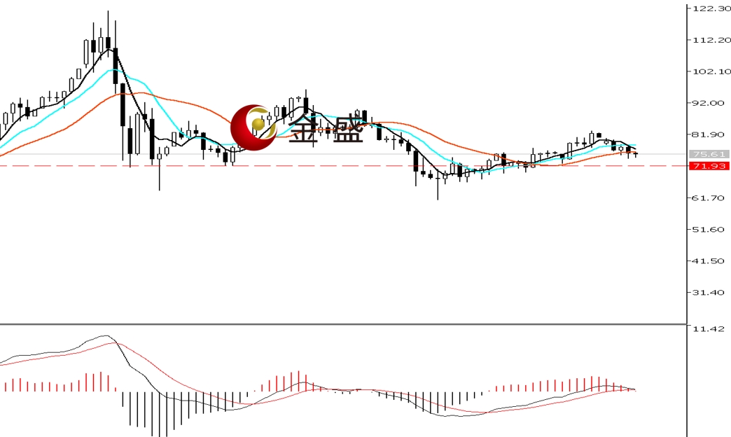 前一个交易日,白银早盘短暂拉升至日内高点78.32美元,随后持续走低,多头失守数个整数关口,午后创当日低点74.19美元。晚盘时段,市场波动降低,价格承压77美元一带震荡为主,最终收阴线。均线系统不断收敛,运行在价格上方形成压力。MACD指标快慢线零轴附近有死叉的迹象,做多的动能衰竭。白银日图出现反转信号,近三日形成两阴加一阳的看跌结构,强化行情进入下行周期,后市偏向测试72美元一带的支撑,操作上反弹做空为主。