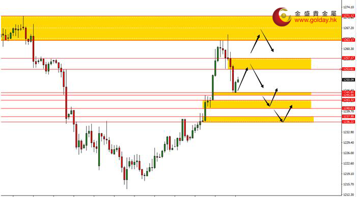 现货黄金周四(5月18日)亚盘和欧盘基本维持高位的横盘震荡走势中后小幅回落,美盘持续大幅回落。昨日说过上方目前重点关注1263-1271美元/盎司区间的阻力,有极大的几率会回调。今日上方可以关注1253-1257和1263-1271美元/盎司区间,下方可以重点关注1245-1246和1240-1243美元/盎司区间,回调该区间可以做多。