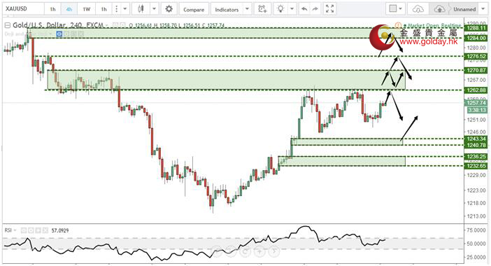现货黄金周四(5月25日)亚盘和欧盘小幅震荡上行。上方依然重点关注1262-1271美元/盎司区间的阻力,特别是1262美元/盎司一线附近,再次触及仍有极大的几率会回调或者进入1262-1270美元/盎司进行区间震荡。下方可以重点关注1240-1243美元/盎司区间,回调该区间可以做多。