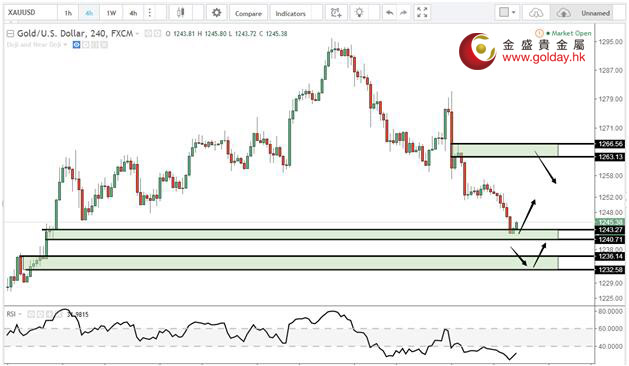 现货黄金周一(6月19日)亚市早盘开于1253.13美元/盎司,最低下探1242.72美元/盎司,最高上涨至1255.62美元/盎司,收于1243.70美元/盎司,下跌10.10美元,跌幅0.81%。