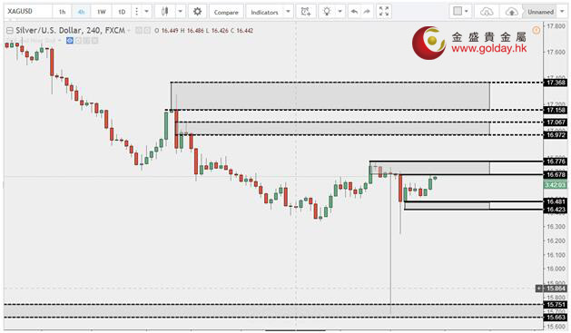 现货白银周二(6月27日)亚盘来了一次闪崩,不过好在伦敦银和沪银的数据没受影响,让大家逃过一劫,没想到下午的黄金也来了一次。上方关注16.67、16.97-17.06和17.30-17.45美元/盎司区间的阻力。下方关注16.48-16.42和15.65-15.75美元/盎司的支撑,回调该位置继续做多。