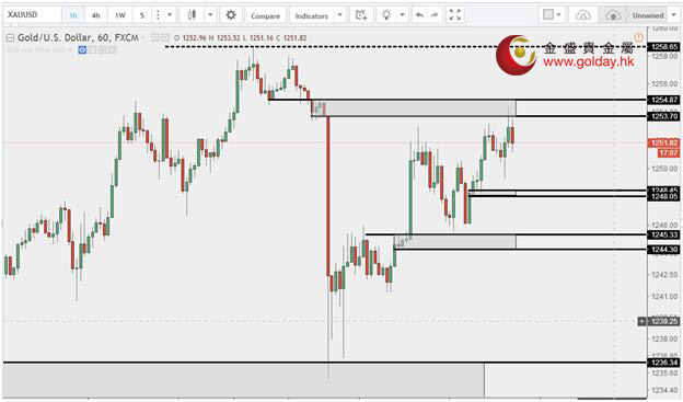 现货黄金周三(6月28日)亚市早盘开于1243.90美元/盎司,最低下探1241.00美元/盎司,最高上涨至1253.01美元/盎司,收于1246.90美元/盎司,上涨2.60美元,涨幅0.21%。