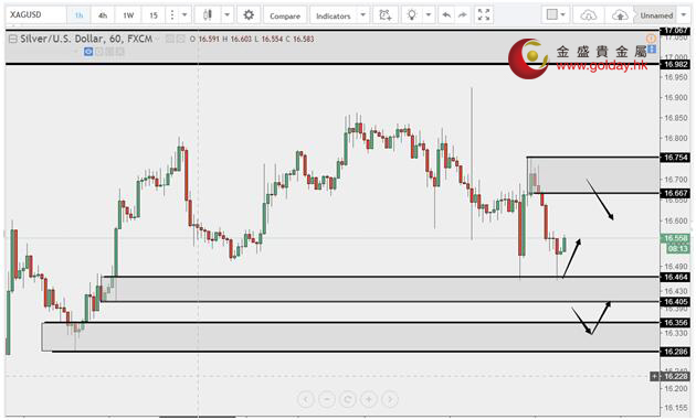 现货白银周三(8月2日)亚盘和欧盘小幅下行,美盘再次走低,下破了16.50一线,打破了之前高点和低点不断抬升的上升格局。上方关注16.66-16.75美元/盎司的阻力,首次触及可以考虑做空,如果突破16.75,选择观望。下方关注16.46-16.40和16.35-16.28美元/盎司支撑区域。
