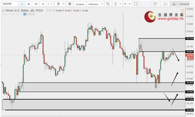 现货白银周四(8月3日)亚盘和欧盘继续震荡走低,下破了16.50一线,昨天打破了之前高点和低点不断抬升的上升格局。上方关注16.50和16.66-16.75美元/盎司的阻力,首次触及可以考虑做空,如果突破16.75,选择观望。下方关注16.46-16.40和16.35-16.28美元/盎司支撑区域。
