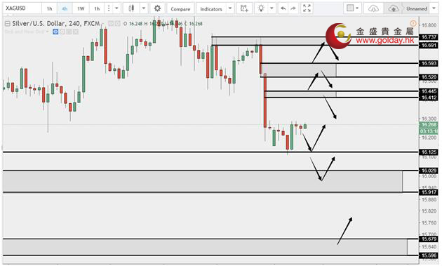 现货白银周二(8月8日)亚盘和欧盘小幅横盘震荡后微微有所回落。上方关注区域是16.40-16.45、16.50-16.60和16.70-16.75美元/盎司的阻力,首次触及可以考虑做空,下方关注16.12、15.90-16.03和15.70-15.60美元/盎司支撑区域。