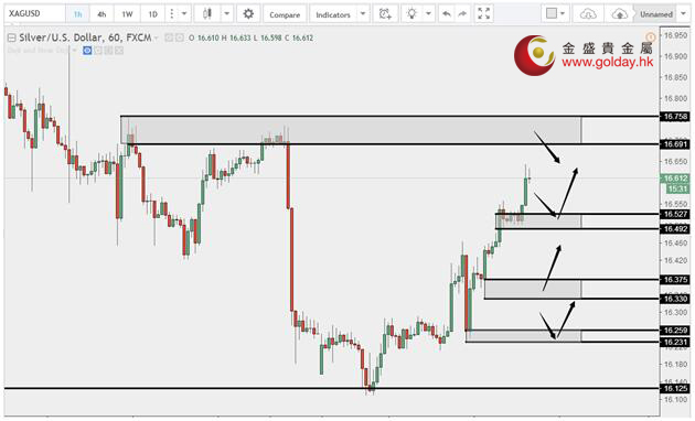 现货白银周三(8月9日)亚盘和欧盘逐步延续震荡上行的走势。上方重点关注区域是16.70-16.75美元/盎司的阻力,首次触及可以考虑做空,若突破则可以暂时观望。下方关注16.50、15.90-16.03和15.70-15.60美元/盎司支撑区域。